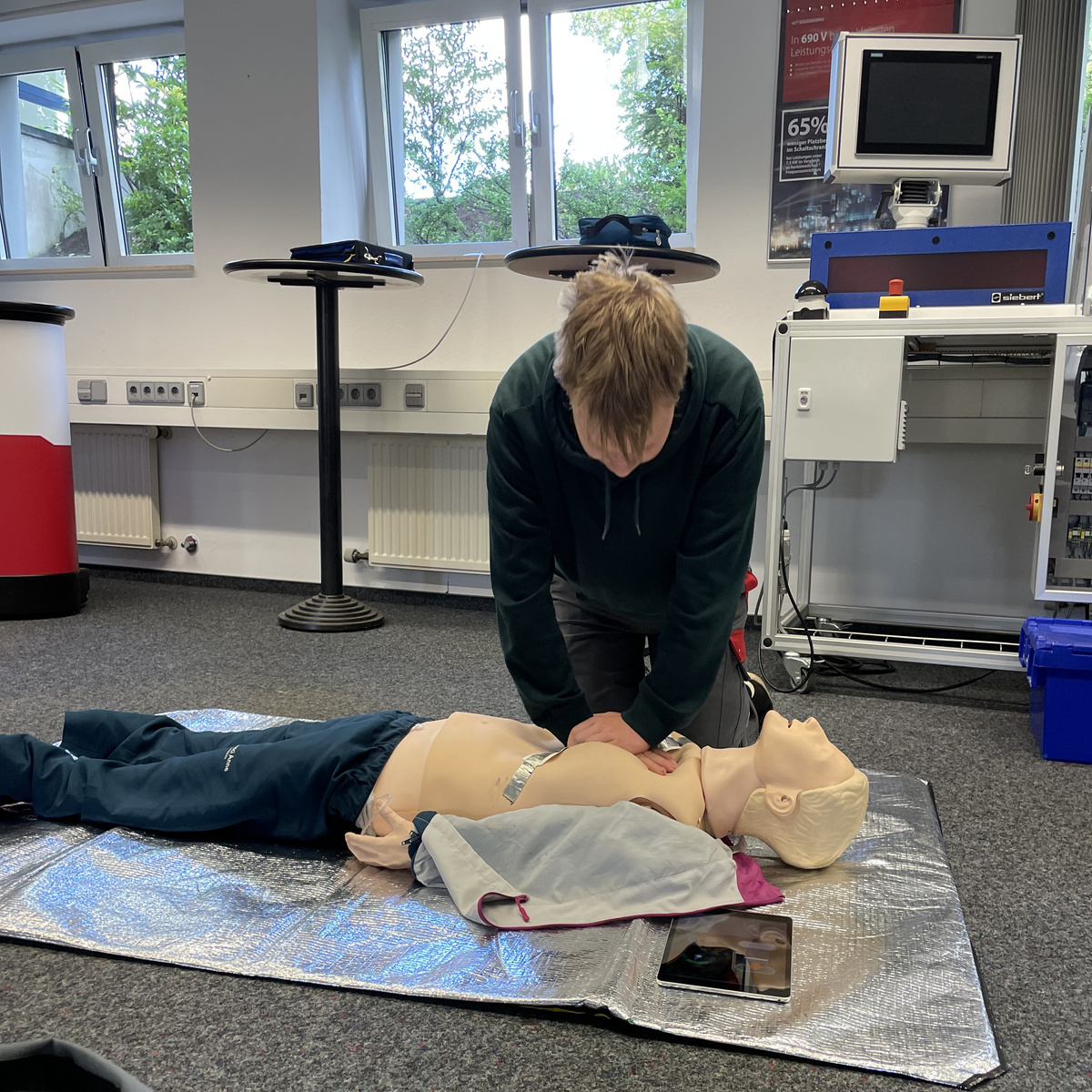 Stabile Seitenlage, Beatmung, Herzdruckmassage: Die Inhalte eines Erste-Hilfe-Kurses sind oftmals ähnlich - und doch nie langweilig! Alle paar Jahre sollte das eigene Wissen im Erste-Hilfe-Leisten aufgefrischt werden. Für Unternehmen ist es außerdem Pflicht, ausreichend aus- und regelmäßig fortgebildete Ersthelfer:innen zur Verfügung zu haben. In unserem Unternehmen bieten wir daher jeder Mitarbeiterin und jedem Mitarbeiter die Möglichkeit an, sich als Ersthelfer:in ausbilden zu lassen.